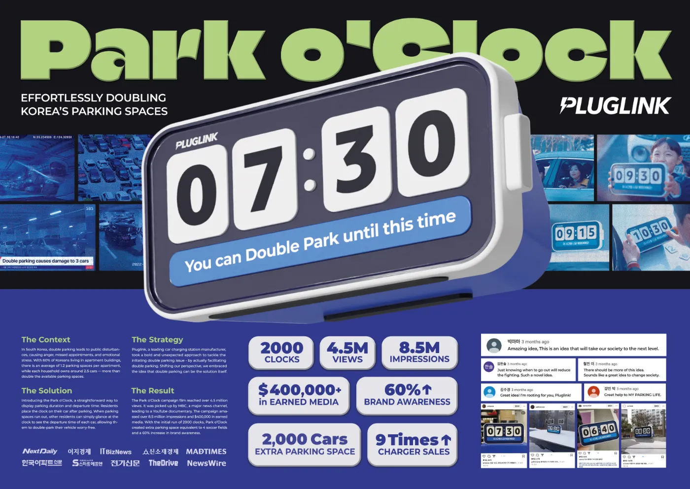 이 캠페인을 통해 주차 갈등을 완화하고 공간을 더 효율적으로 쓰게 만들면서, 결과적으로는 추가 전기차 충전기 설치에 대한 반대 여론을 누그러뜨리고 브랜드에 대한 긍정적 인식까지 만들어내는 흐름을 만들었습니다.