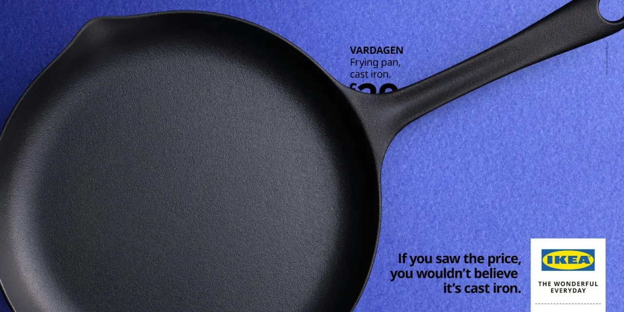 source : IKEA 주철(Cast Iron): 묵직한 'VARDAGEN(바르다겐)' 프라이팬은 무쇠 특유의 단단함을 내세웠습니다.
